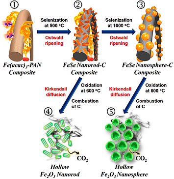 67. J. S. Cho, J. S. Park, Y. C. Kang, Preparation of Hollow Fe2O3 Nanorods and Nanospheres by Nanoscale Kirkendall Diffusion, and Their Electrochemical Properties for Use in Lithium-Ion Batteries, Scientific Reports,6(2016)38933